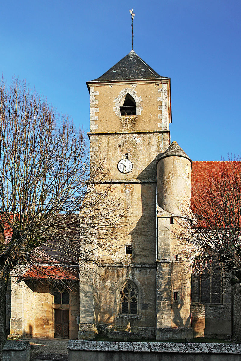 L’église est un édifice du XVe et début du XVIe siècle : Le clocher de 4 niveaux sur un plan carré flanqué d’un escalier circulaire hors-d’œuvre abrité dans une tourelle émerge de la quatrième et dernière travée du bas-côté Sud. Un cœur polygonal de l’époque renaissance entouré d’un déambulatoire termine l’édifice à l’Est. Une nef de 4 travées avec bas-côtés prolongée à l’Ouest par 3 travées. L’ensemble est voûté sur croisées d’ogives sauf deux travées : la première située sous le clocher présente un large oculus central en guise de clé de voûte, la seconde précédant le sanctuaire comporte en plus des diagonales des liernes et tiercerons. Les retombées des croisées d’ogives s’appuient sur des consoles sculptées de figures humaines et grimaçantes ou d’animaux aux traits simples mais non grossiers. Le clocher est couvert d’ardoises sur ses quatre côtés alors que la nef et le chœur sont recouverts de tuiles plates. Seule la sacristie présente une couverture en laves calcaires ; il est vraisemblable que l’ensemble de l’édifice ait été recouvert de laves. Les vitraux datent du XIXe siècle sauf pour ceux de la sacristie qui datent de la fin du XVIe - début du XVIIe siècle. La nef est uniquement éclairée par les baies flamboyantes des bas-côtés comme fréquemment dans le département de l’Yonne. Le portail (façade Ouest) est surmonté d’une large fenêtre ogivale éclairant la nef. L’église est protégée au titre des monuments historiques par un arrêté de classement du 15 janvier 1908. |